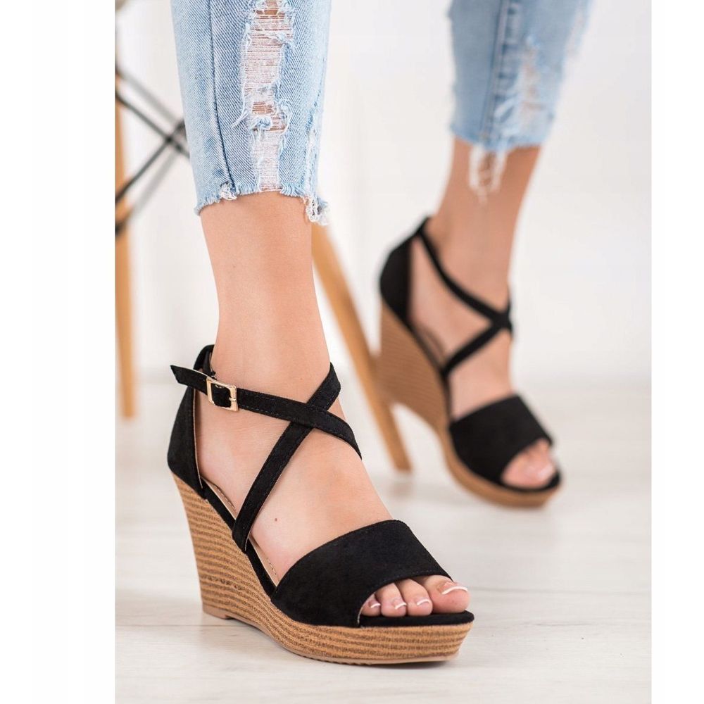 Szczegóły: Small Swan Czarne Zamszowe Koturny