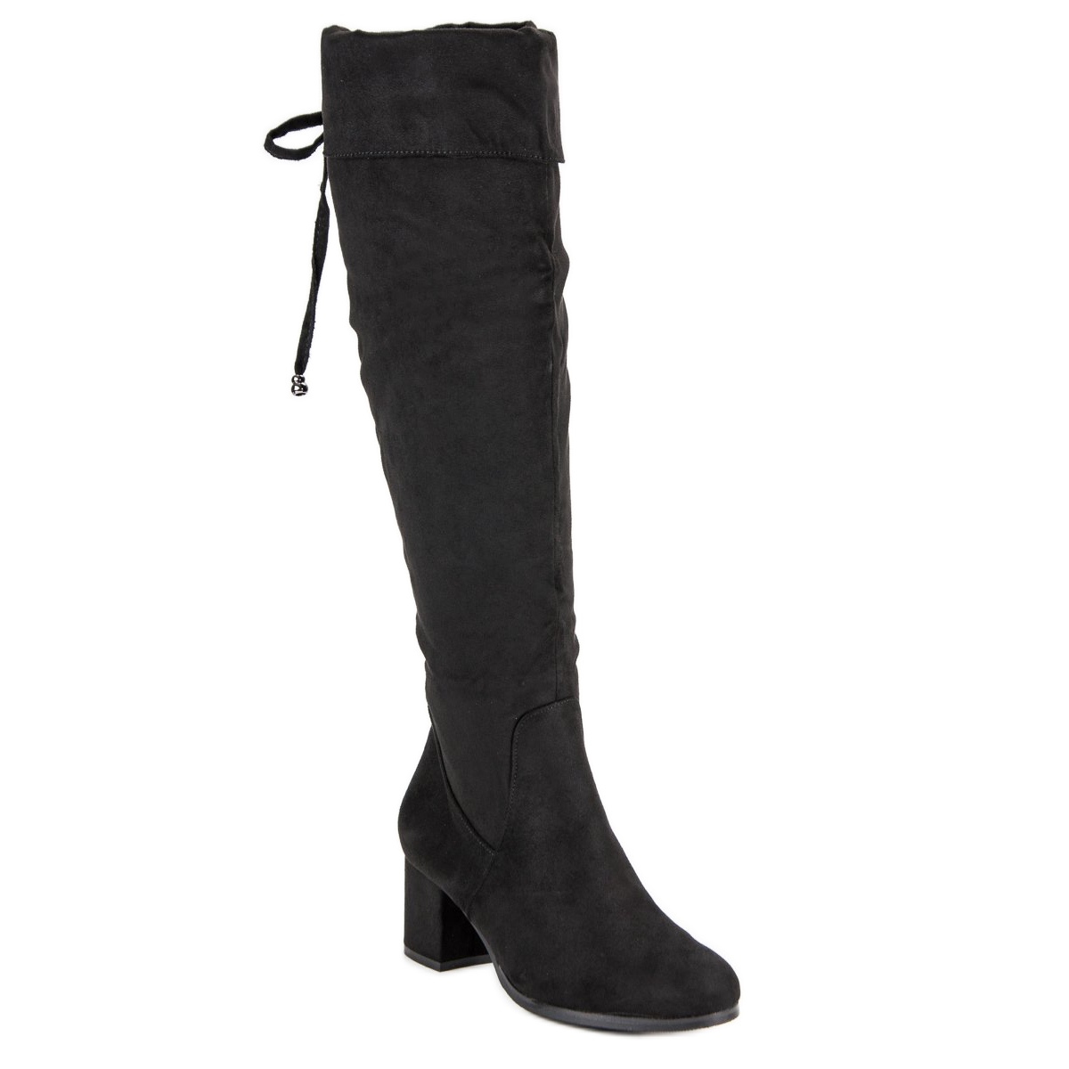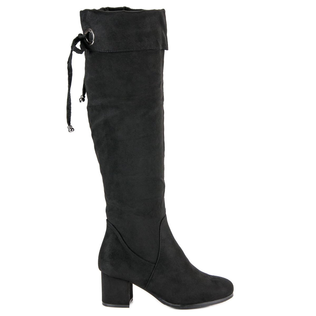 Czarne zamszowe kozaki to ponadczasowy element garderoby, który doda każdej stylizacji elegancji. Wykonane z wysokiej jakości ekologicznego zamszu, te buty przyciągają wzrok swoją klasyczną formą i dbałością o detale. Dzięki wysokości cholewki powyżej kolana i obcasowi w formie słupka o wysokości 6 cm, kozaki doskonale podkreślają kobiece nogi, zapewniając jednocześnie stabilność i komfort noszenia.