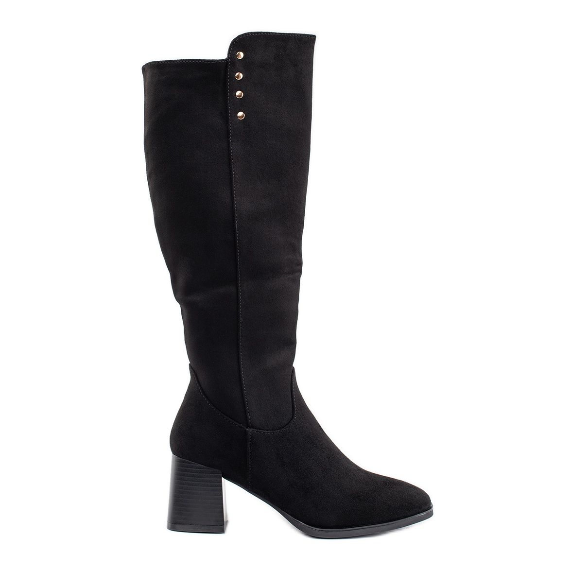 Wybierz czarne zamszowe kozaki na słupku, które będą doskonałym uzupełnieniem Twojej garderoby i podkreślą Twój unikalny styl na każdą okazję!