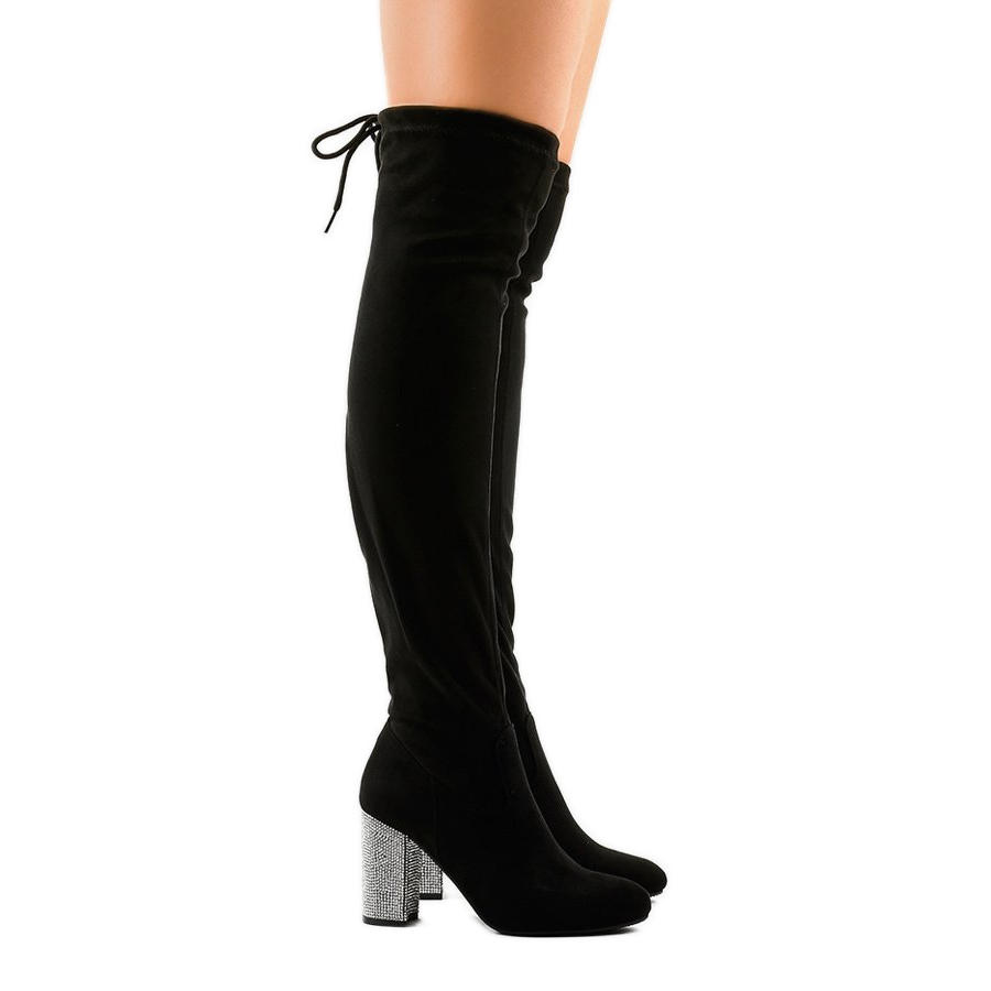 Szczegóły: Czarne zamszowe kozaki na zdobionym słupku BM150
