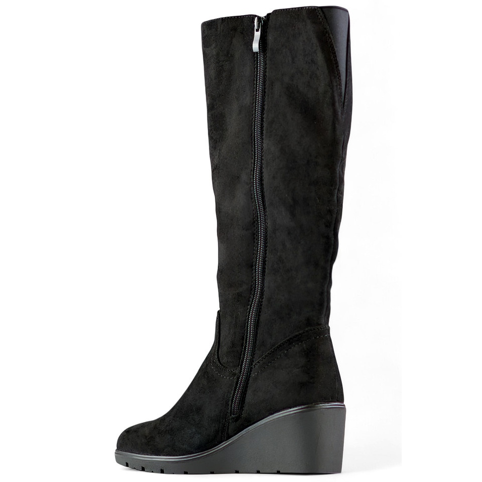 Szczegóły: Czarne zamszowe kozaki pod kolano kozaki damskie na koturnie