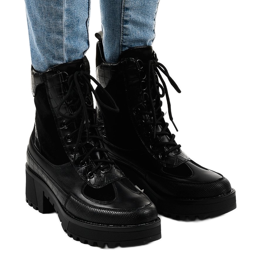 Szczegóły: Czarne zamszowe traperki wiązane G-7646