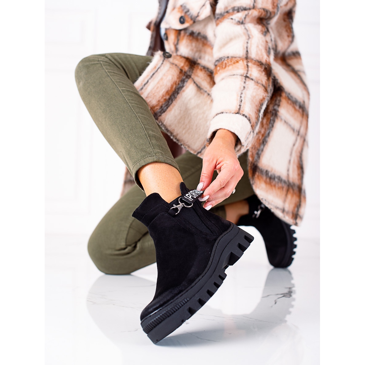 Szczegóły: W. Potocki Czarne zamszowe workery Potocki