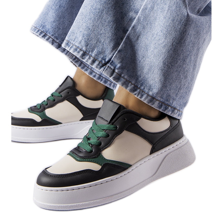 Inna marka Czarno-zielone sneakersy na platformie Baron czarne