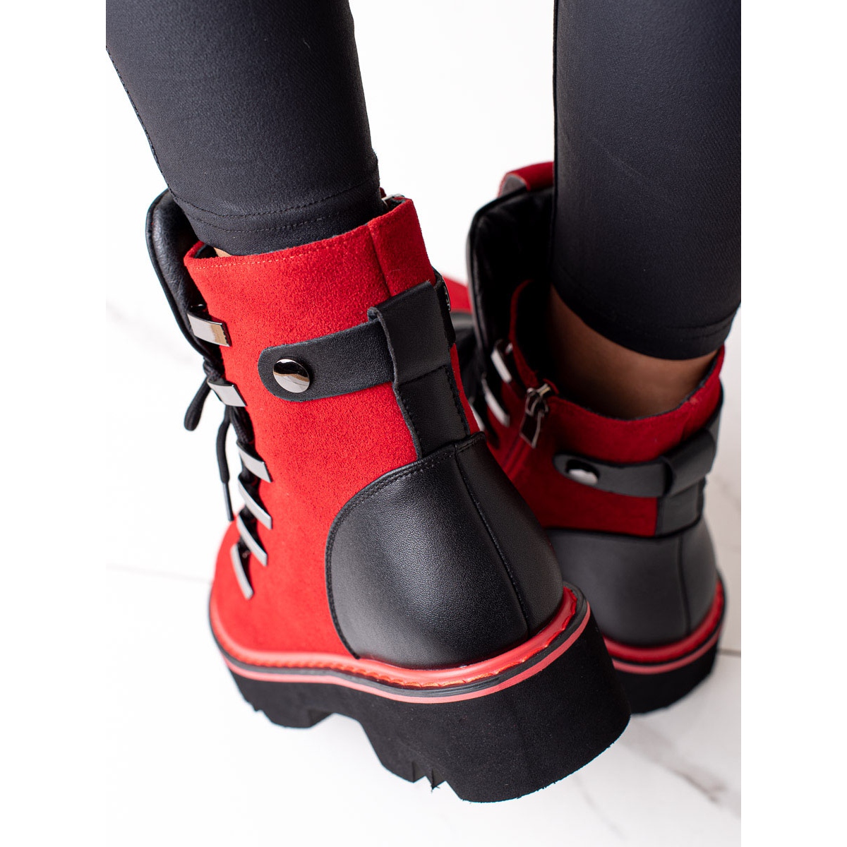 Szczegóły: Czerwone botki trapery ze skóry Artiker