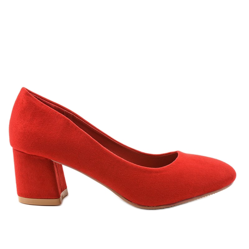 Szczegóły: Czerwone czółenka na słupku z eko-zamszu JF619