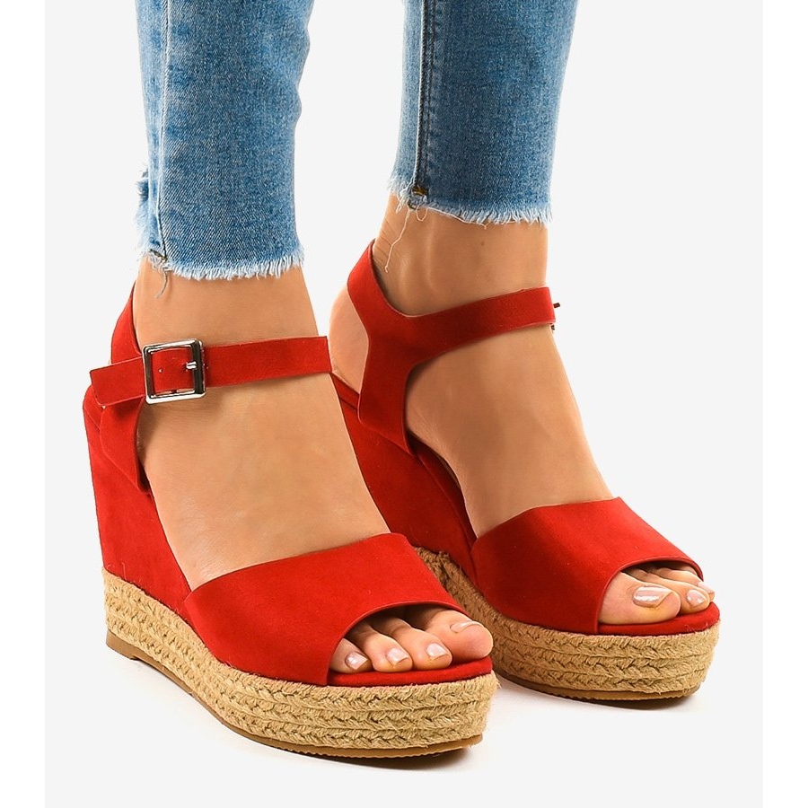 Szczegóły: Czerwone espadryle sandały na koturnie 9R195