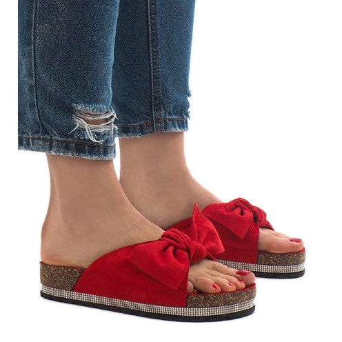 Czerwone klapki z kokardą N-33 to idealny wybór dla kobiet, które pragną połączyć styl z komfortem w codziennych stylizacjach. Te wyjątkowe klapki wyróżniają się intensywnym czerwonym kolorem oraz urokliwą kokardką, która dodaje im dziewczęcego uroku. Dodatkowo, cekiny przy podeszwie wprowadzają odrobinę blasku, czyniąc je doskonałym wyborem na letnie dni.