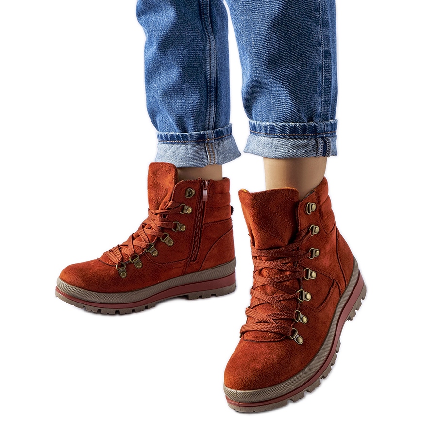 Inna marka Czerwone ocieplane buty trekkingowe Mazara brązowe