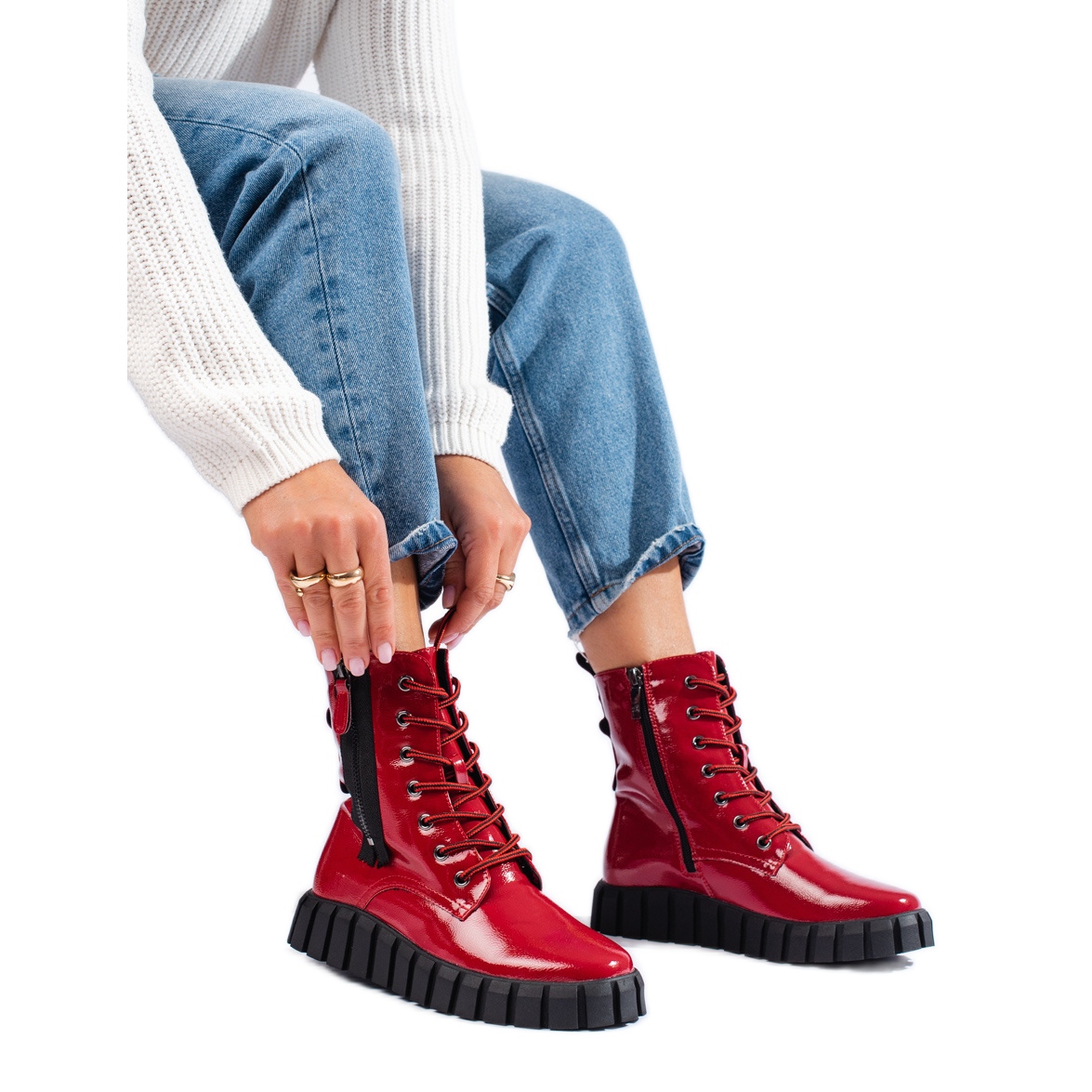 Czerwony kolor butów wyróżnia się na tle innych modeli, przyciągając wzrok i dodając odważnego akcentu do każdej stylizacji. Idealne do jeansów, sukienek czy skórzanych spódnic - te botki z pewnością staną się ulubionym elementem w Twojej garderobie.