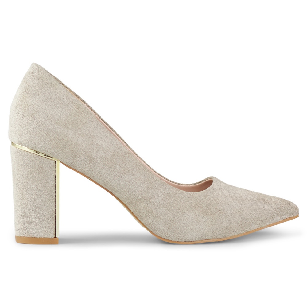 Cholewka z trwałego zamszu ekologicznego nadaje butom subtelny, ale luksusowy wygląd, a szpiczasty nos pozwala podkreślić elegancję sylwetki. Wysokość słupka wynosząca 8 cm zapewnia odpowiednią wysokość, dodając kobiecości, jednocześnie utrzymując komfort noszenia przez cały dzień. Wkładka ze skóry naturalnej dba o wentylację stóp, zapewniając przyjemne uczucie w każdej sytuacji.