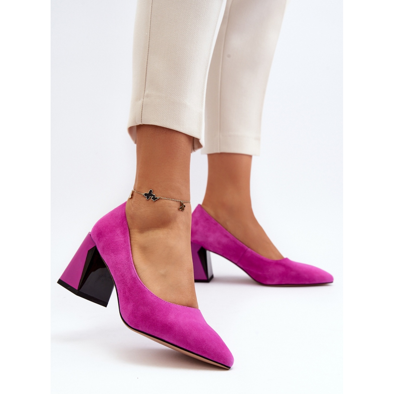 Przedstawiamy eleganckie czółenka Model 66602 w modnym, różowym kolorze, które łączą styl z niesamowitą wygodą. Osadzone na stabilnym obcasie słupku o wysokości 7.5 cm, zapewniają nie tylko atrakcyjny wygląd, ale również komfort podczas noszenia przez cały dzień.
