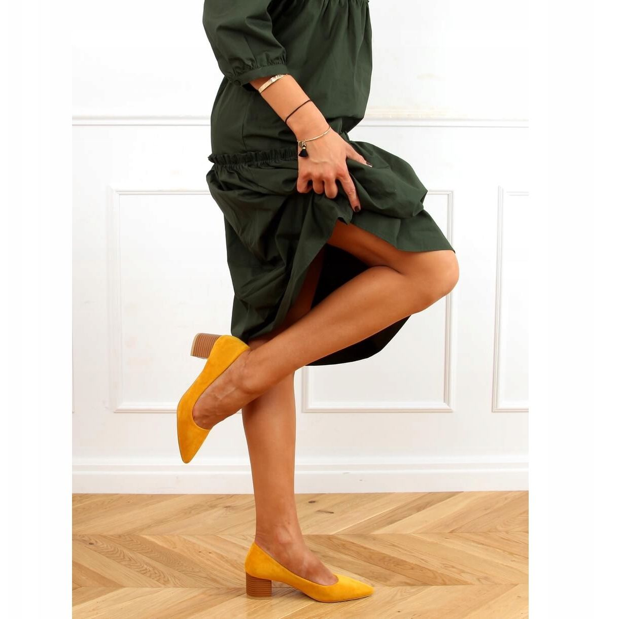 Szczegóły: Czółenka na drewnianym obcasie miodowe CL75P Yellow żółte
