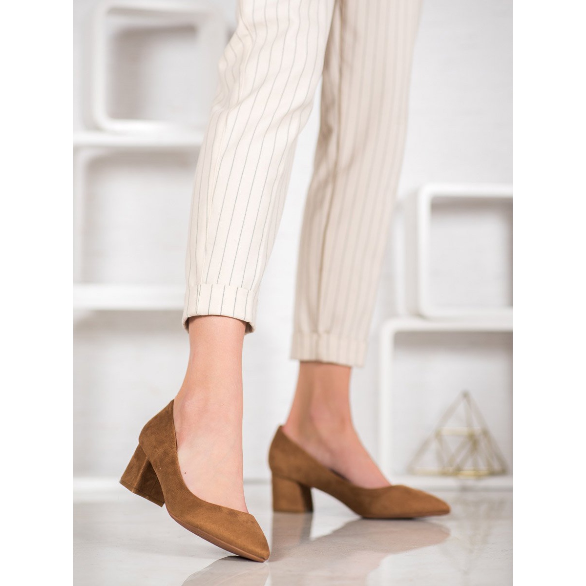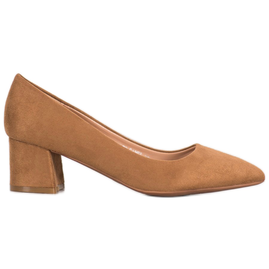 Brązowe Czółenka Na Słupku od Fama – Elegancja w Każdym Kroku