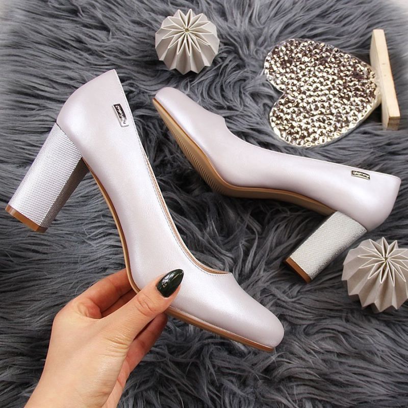 Czółenka na słupku Sergio Leone W SK193C — srebrne perłowe