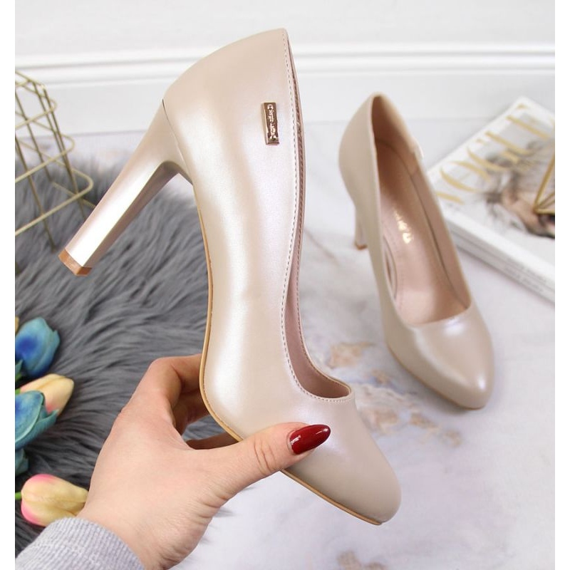 Szczegóły: Czółenka na słupku Sergio Leone W SK3AC perłowe nude
