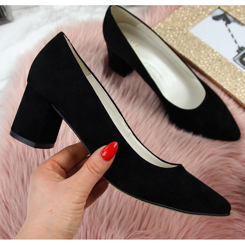 Szczegóły: Czółenka na słupku zamszowe czarne Juma