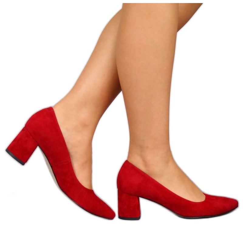 Czółenka na słupku W Juma — czerwone, zamszowe, eleganckie i wygodne