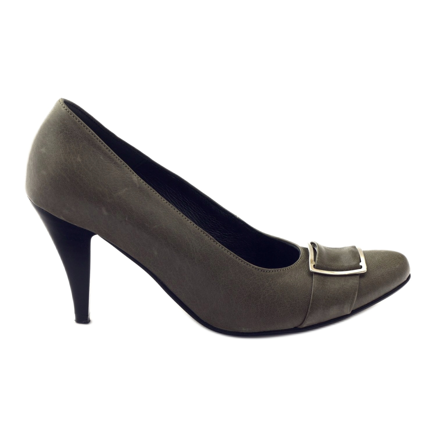 Korda Czółenka skórzane szare ze srebrną klamrą Korda