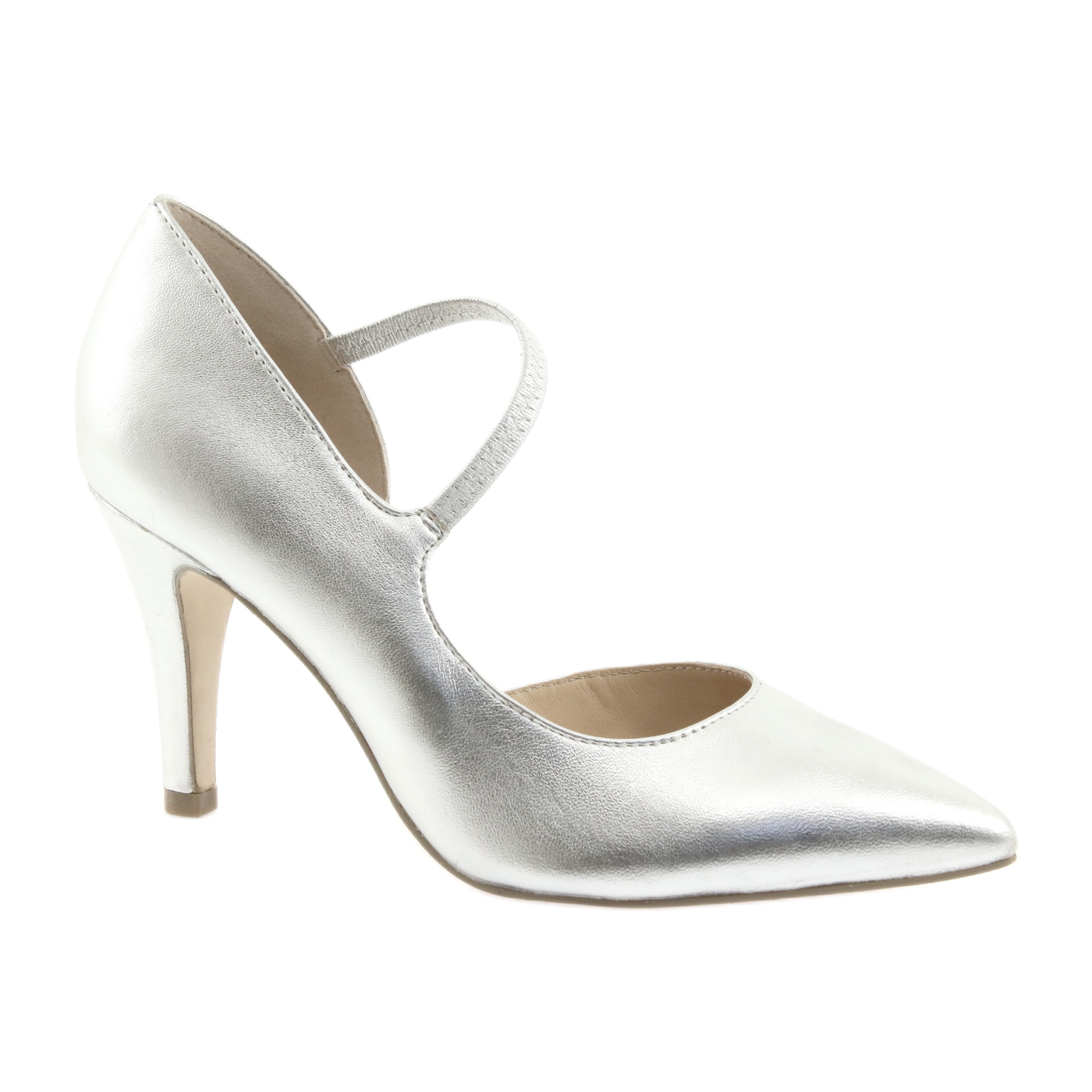 Caprice Czółenka z paskiem Caprice 24402 srebrne srebrny