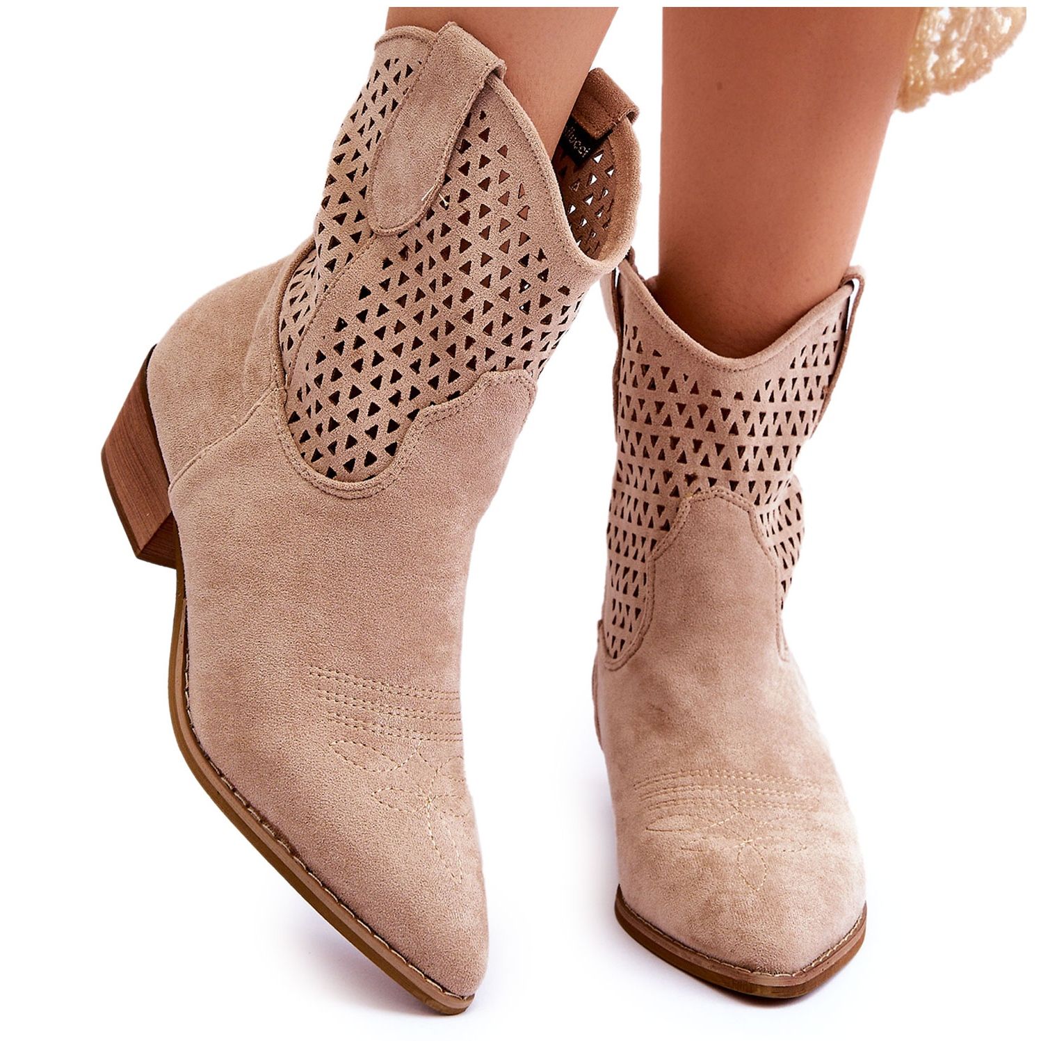 Inna marka Damskie Ażurowe Botki Kowbojki Beżowe Reeds beżowy