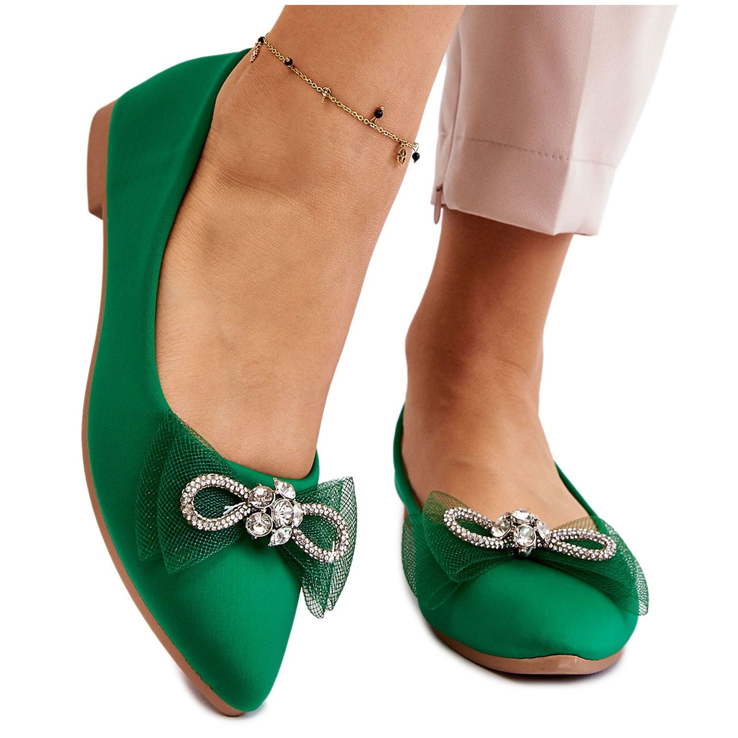 Szczegóły: PS1 Damskie Baleriny W Szpic Z Ozdobną Kokardą Zielone Luminous