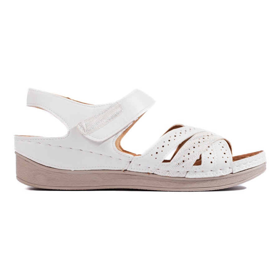 Wykonane z wysokiej jakości skóry ekologicznej, zarówno wewnętrzna, jak i zewnętrzna część buta zapewniają komfort i trwałość. Ażurowy fason pozwala na dobrą wentylację, co jest szczególnie istotne w cieplejsze dni. Otwarty zapiętek oraz design bez noska gwarantują lekkość i swobodę noszenia, a praktyczne zapięcia na rzepy ułatwiają zakładanie i zdejmowanie.
