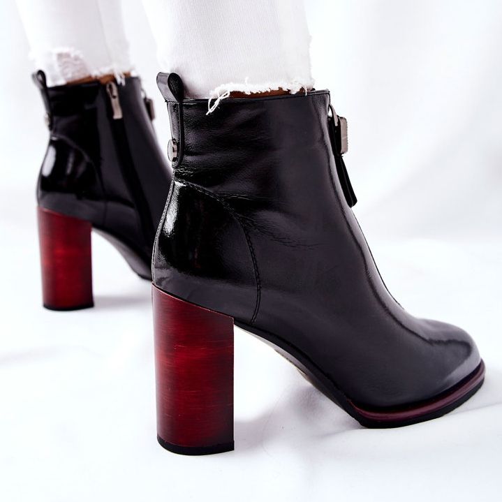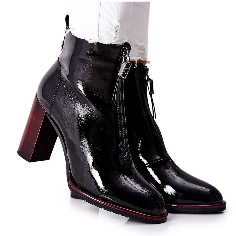 S.Barski S.Barski Damskie Botki Czarne Lakierowane na Słupku Cofton