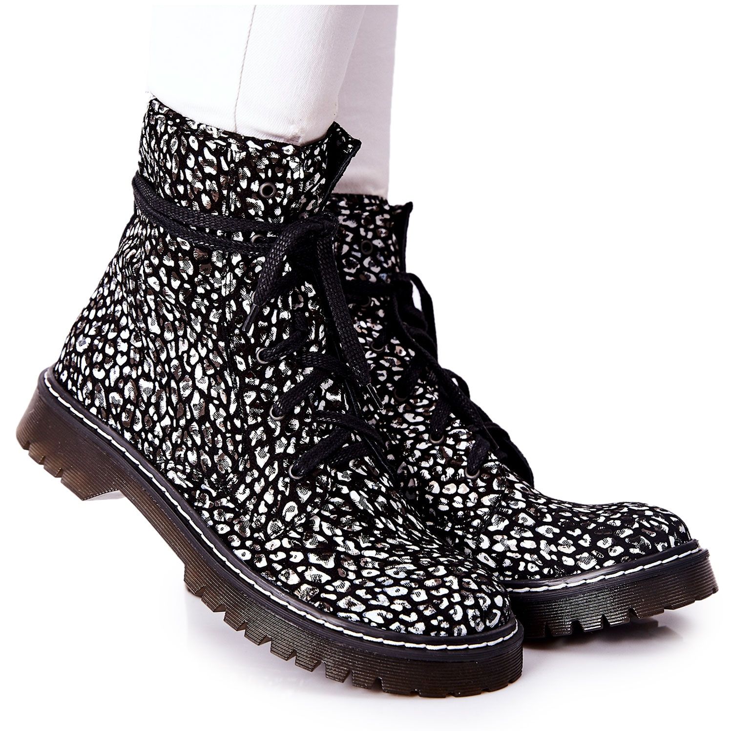 Maciejka Damskie Botki Glany Workery Maciejka Czarno-Białe 01609-48 czarne