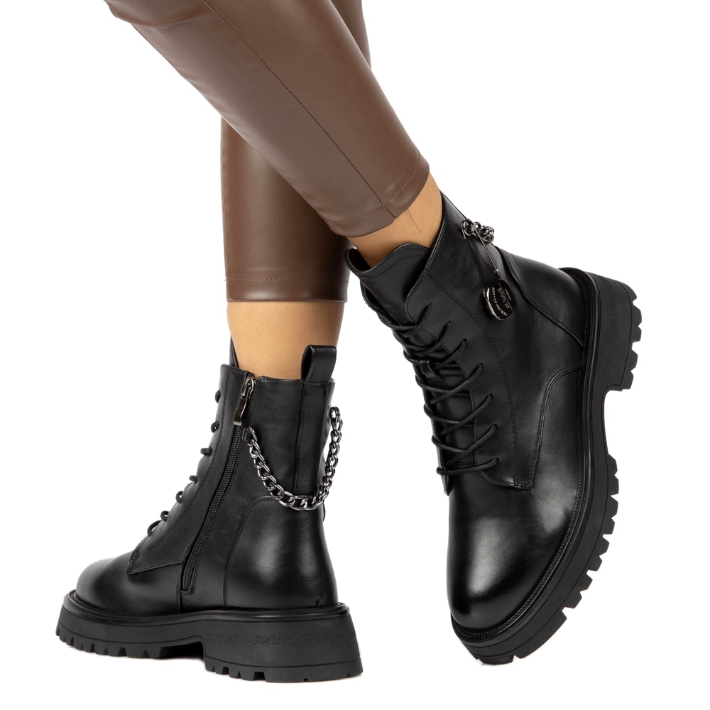Filippo Damskie botki glany z agrafką i łańcuchem Filippo DBT4059 czarne