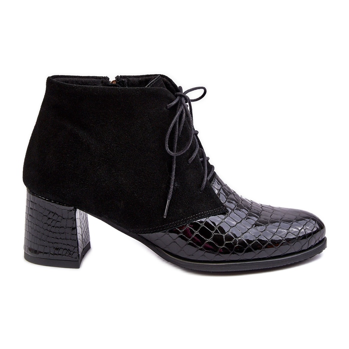 PA2 Ebba — damskie botki na niskim słupku, czarne, wężowy wzór