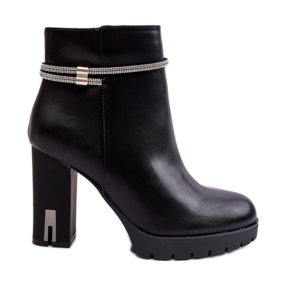 Szczegóły: Damskie botki na słupku z ozdobą Black czarne