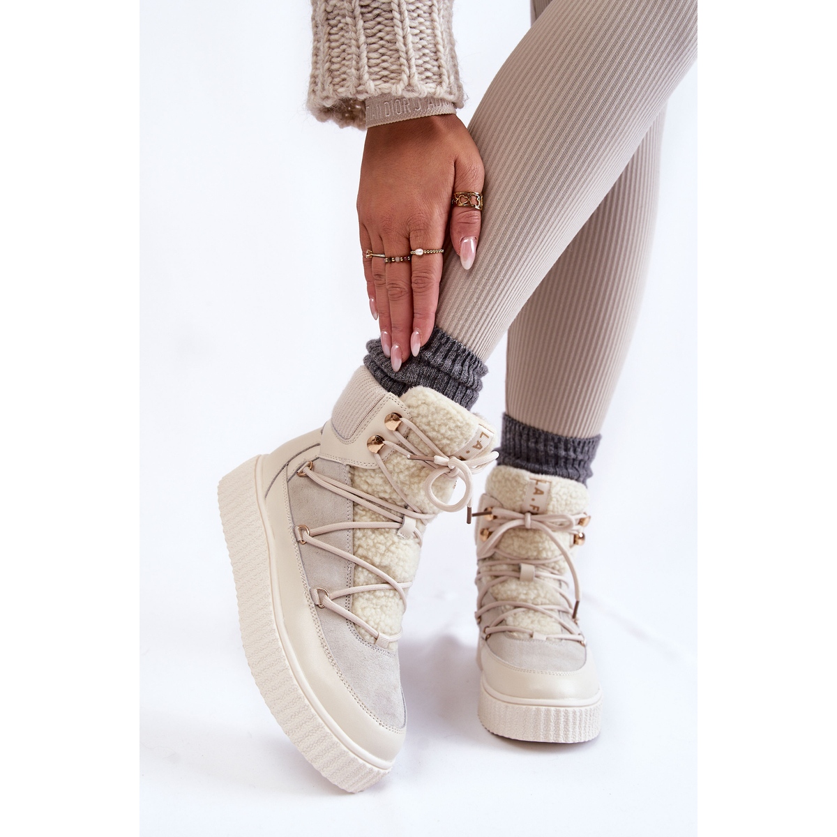 ### PL4 Damskie Botki Śniegowce La.Fi 280072W-QN Jasnobeżowe – Połączenie Stylu i Komfortu