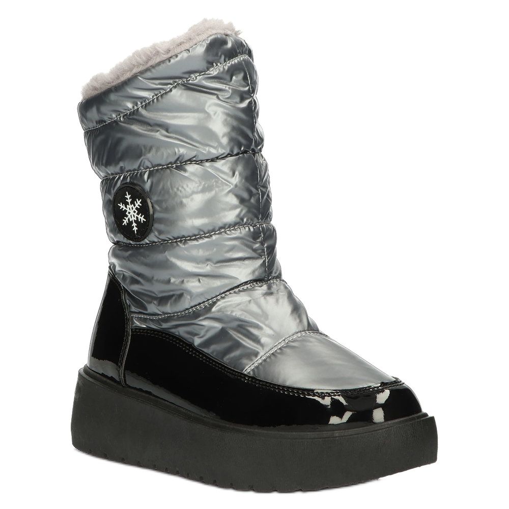 Szczegóły: Damskie botki śniegowce śnieżynka Filippo DBT3404 czarno-srebrne czarne