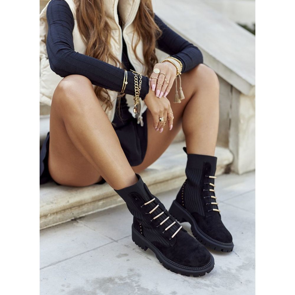 Oferowane w klasycznym czarnym kolorze, botki te pasują do wielu różnych stylizacji – świetnie będą wyglądać zarówno z jeansami, jak i spódnicami. Okrągły nosek i płaski obcas o wysokości 5,5 cm gwarantują wygodę noszenia przez cały dzień, a syntetyczna podeszwa zapewnia trwałość i stabilność.