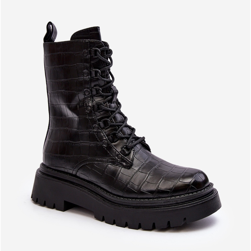Szczegóły: Damskie Botki Workery Z Ozdobnym Tłoczeniem Czarne Tarolia