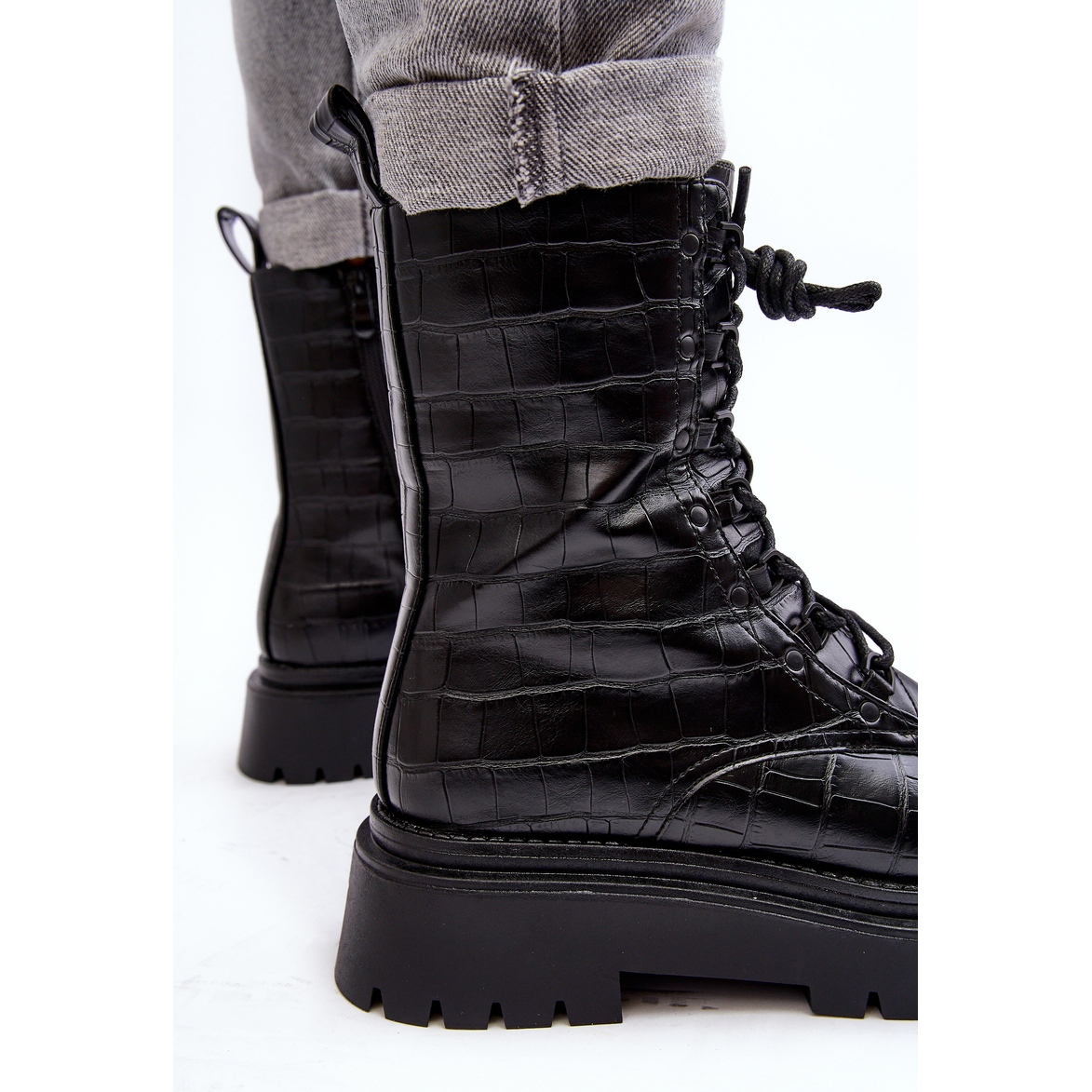 Inna marka Damskie Botki Workery Z Ozdobnym Tłoczeniem Czarne Tarolia