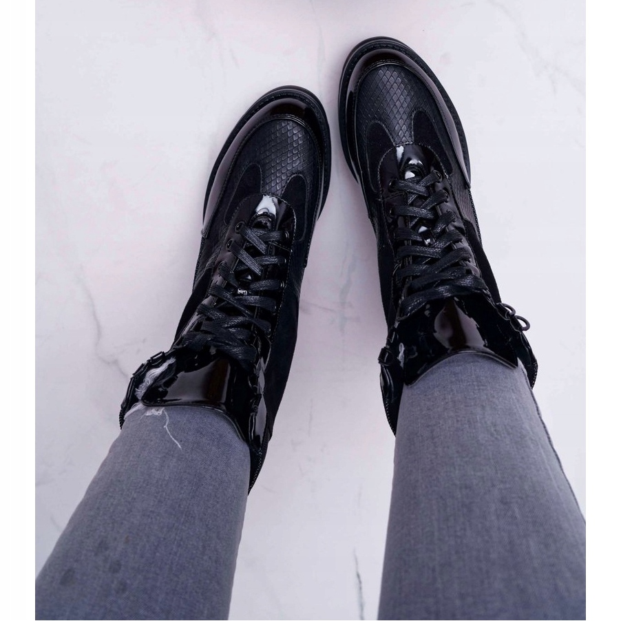 Te modne botki dostępne są w eleganckim czarnym kolorze, który świetnie komponuje się z każdą stylizacją. Zapięcie na sznurowadła zapewnia idealne dopasowanie, podczas gdy syntetyczna podeszwa podnosi komfort użytkowania.