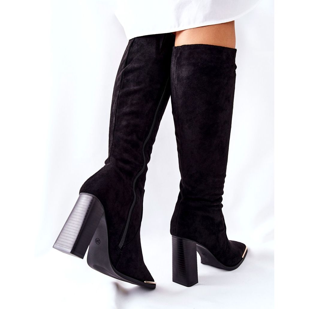 PS1 PS1 Damskie Ciepłe Kozaki Złoty Nosek Czarne Puentos