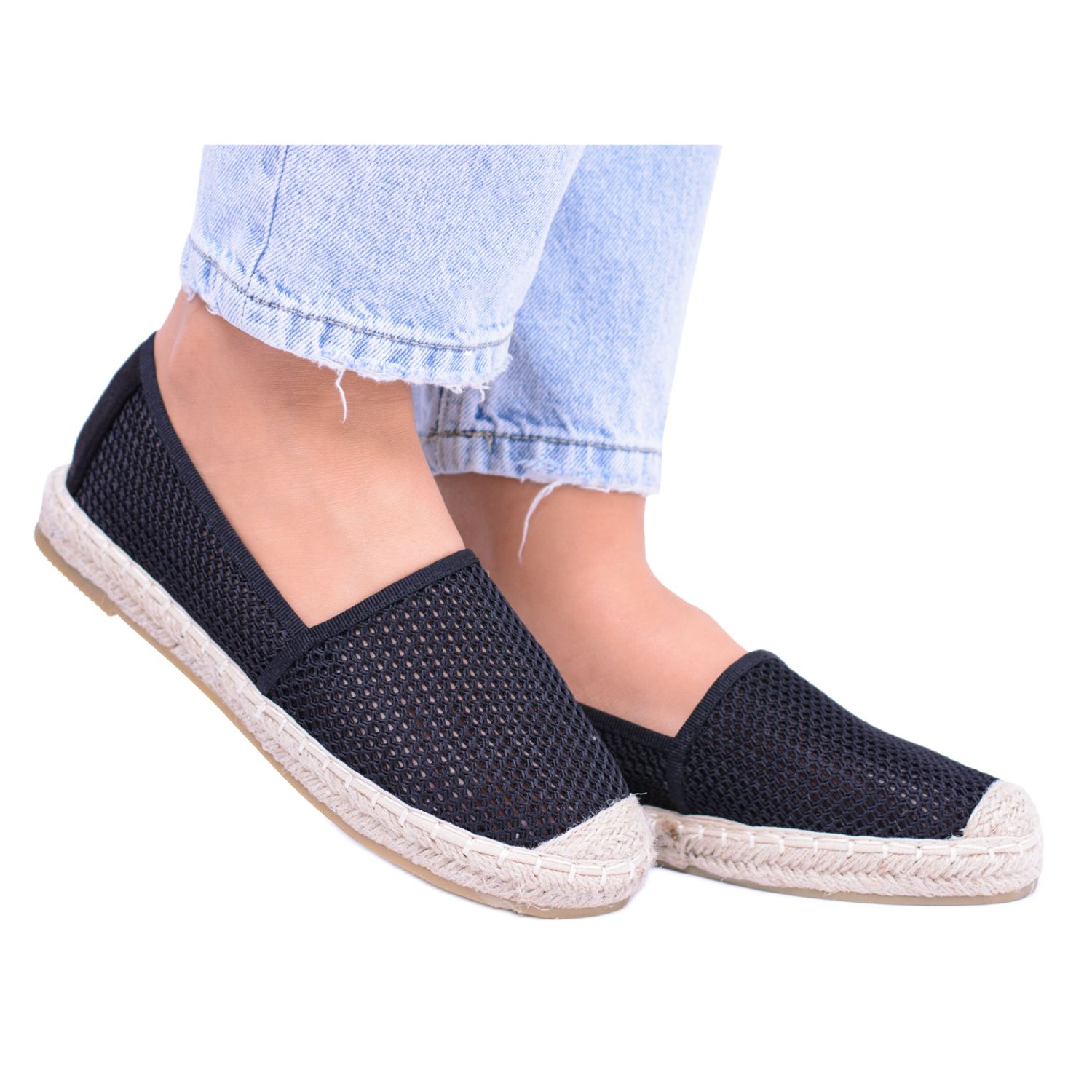 Szczegóły: Damskie Czarne Dziurkowane Espadryle Asumi