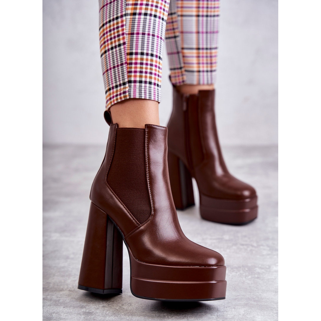 Inna marka Damskie Eko-Skóra Botki Na Masywnym Obcasie Brązowe Jones