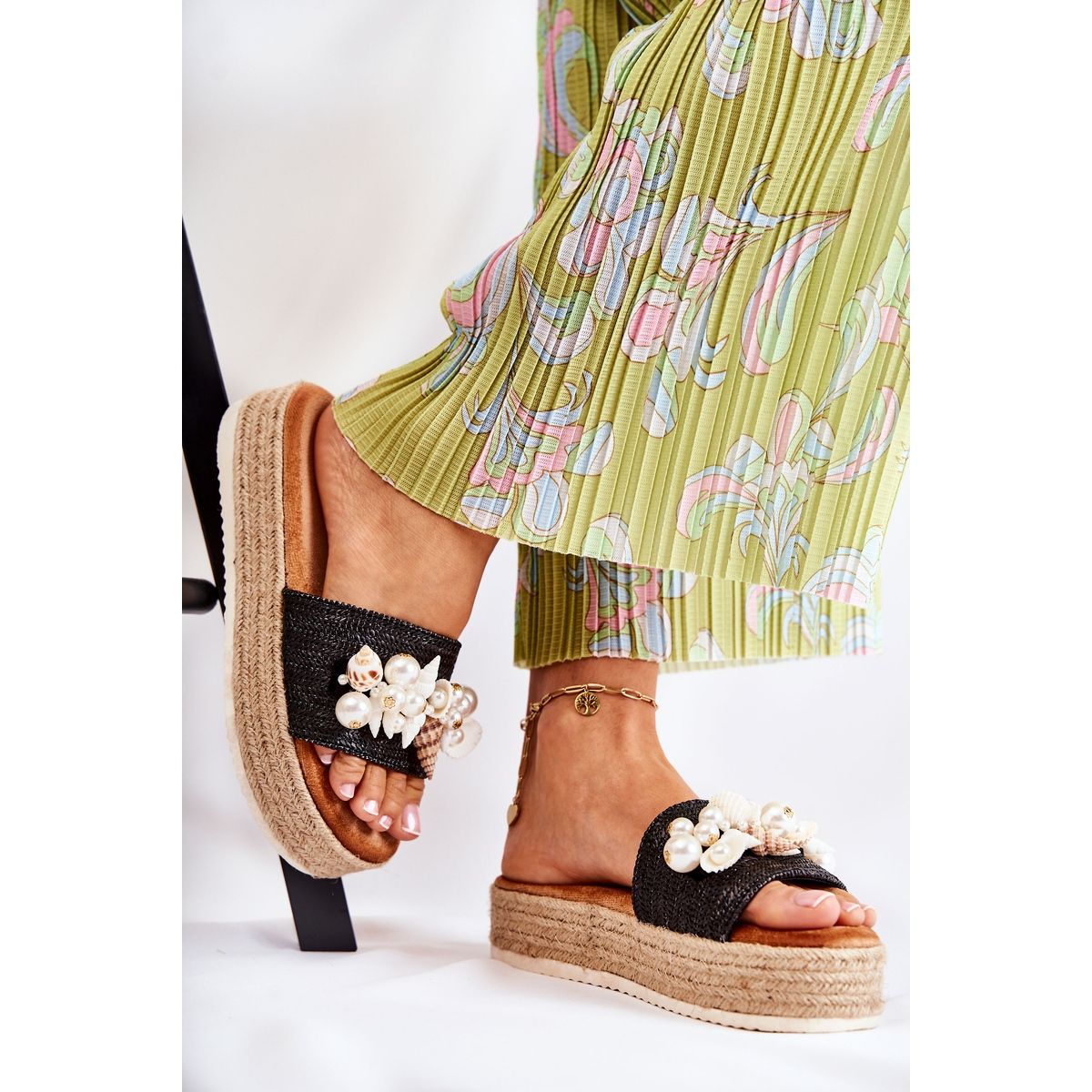 PS1 Prezentuje: Damskie Klapki Na Platformie Z Muszelkami Czarne Tolia - Twoje Must-Have Na Lato