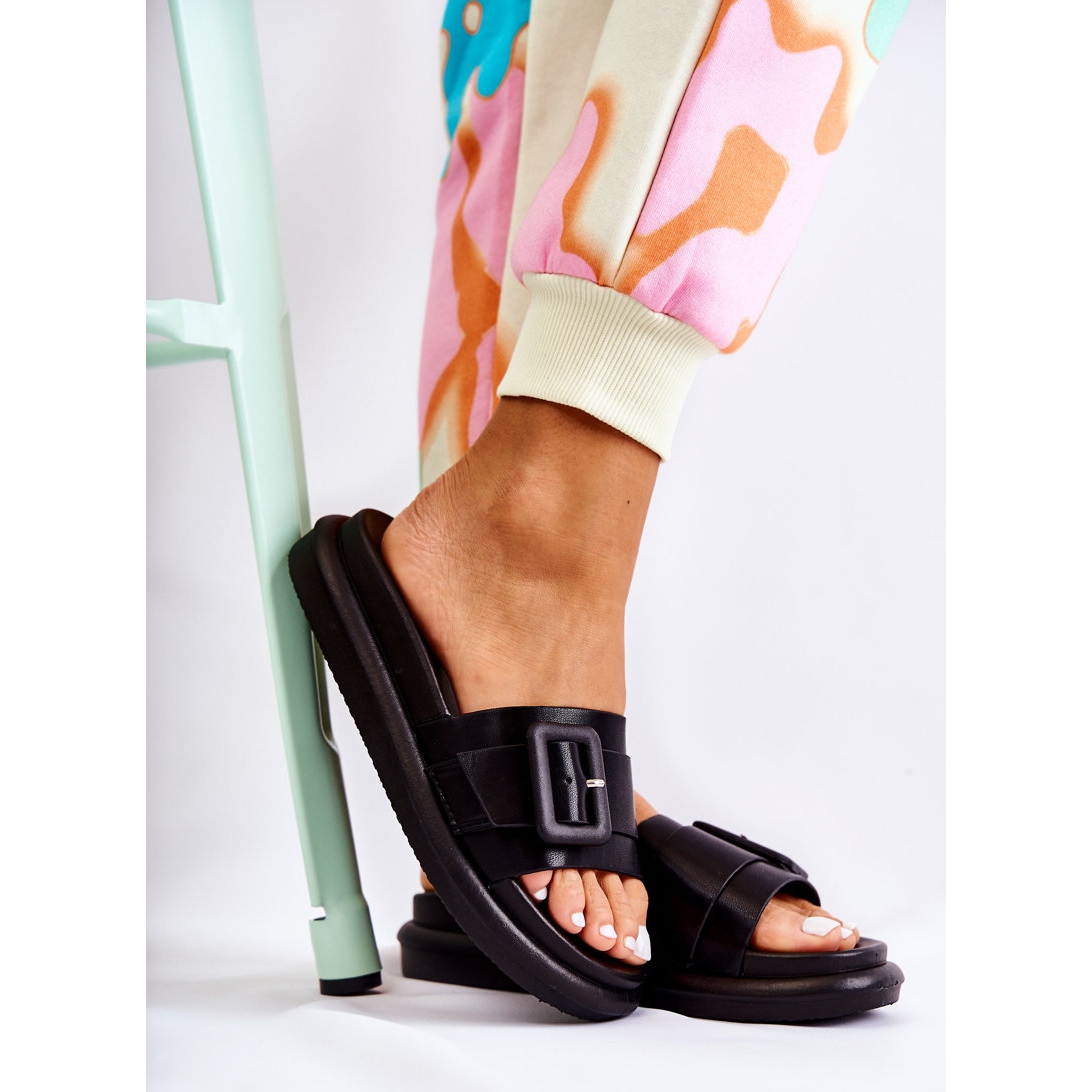 Inna marka Damskie Klapki Z Klamrą Czarne Devia