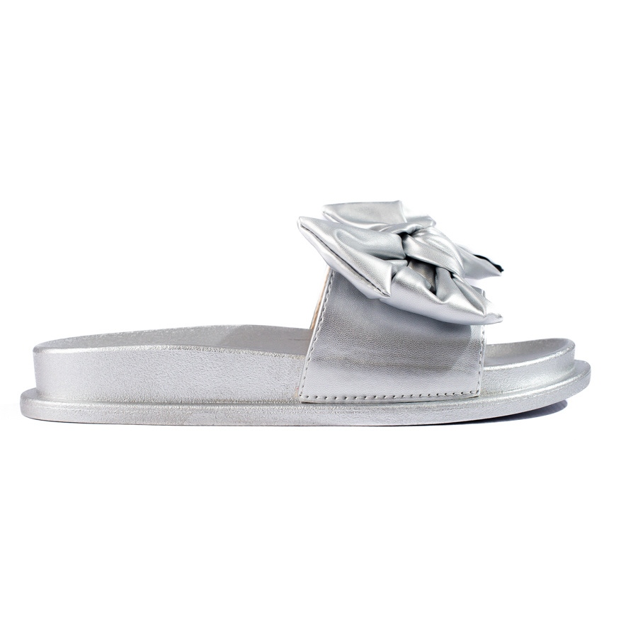W. Potocki W. Potocki Damskie klapki z kokardą Potocki srebrne srebrny