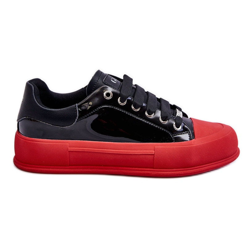 Szczegóły: Damskie Lakierowane Trampki Na Platformie GOE LL2N4021 Czarno-Czerwone czarne