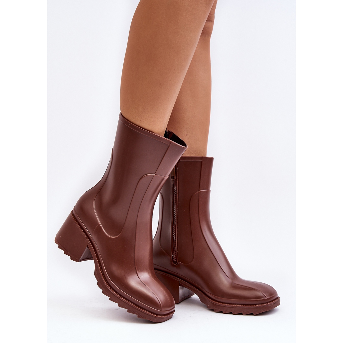 Szczegóły: Damskie Matowe Kalosze Botki Na Obcasie Brązowe Bertaida