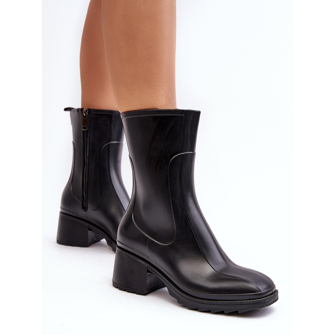 Szczegóły: Damskie Matowe Kalosze Botki Na Obcasie Czarne Bertaida