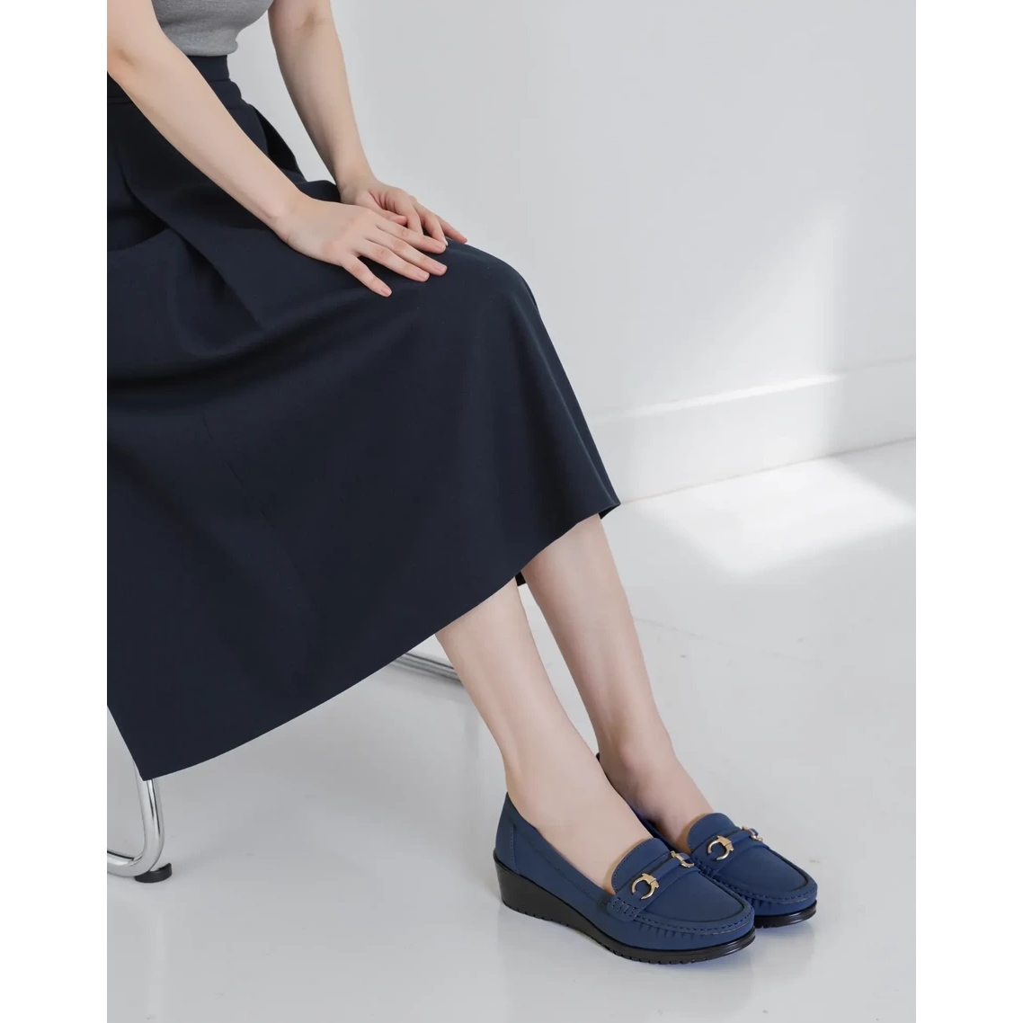 Klasyczny design z delikatną, złotą ozdobą z przodu nadaje im wyjątkowego szyku, co czyni je idealnym wyborem na różne okazje. Dzięki podwyższonej koturnie, mokasyny Mirena Blue zapewniają stabilność oraz komfort, pozwalając na bezproblemowe noszenie przez cały dzień, niezależnie od tego, czy wybierasz się do pracy, na spotkanie z przyjaciółmi, czy na weekendowy spacer.