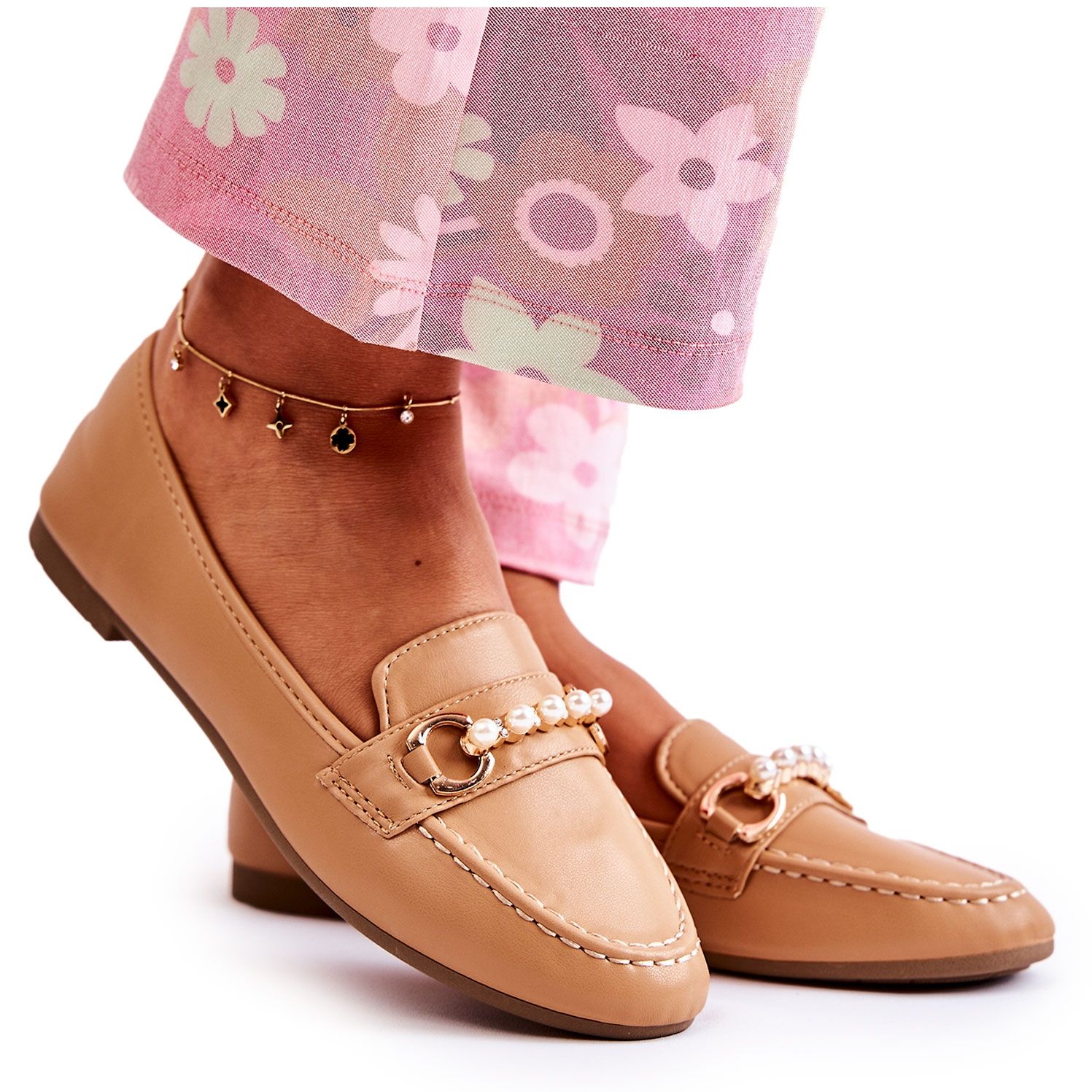 PG1 PG1 Damskie Mokasyny Z Ozdobnymi Perłami Brązowe Sergia