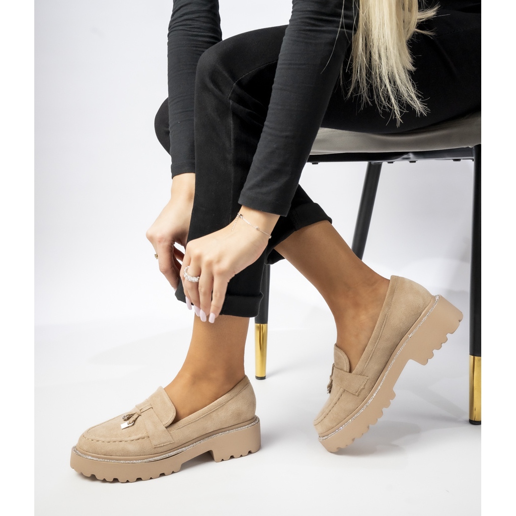 Szczegóły: Damskie Mokasyny Zamszowe z frędzlami Khaki beżowy